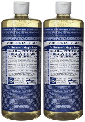 Dr. Bronner's Organic Pure Castile Liquid Soap, Peppermint Oil, 32 oz, 2 ct (Quantity of 2)